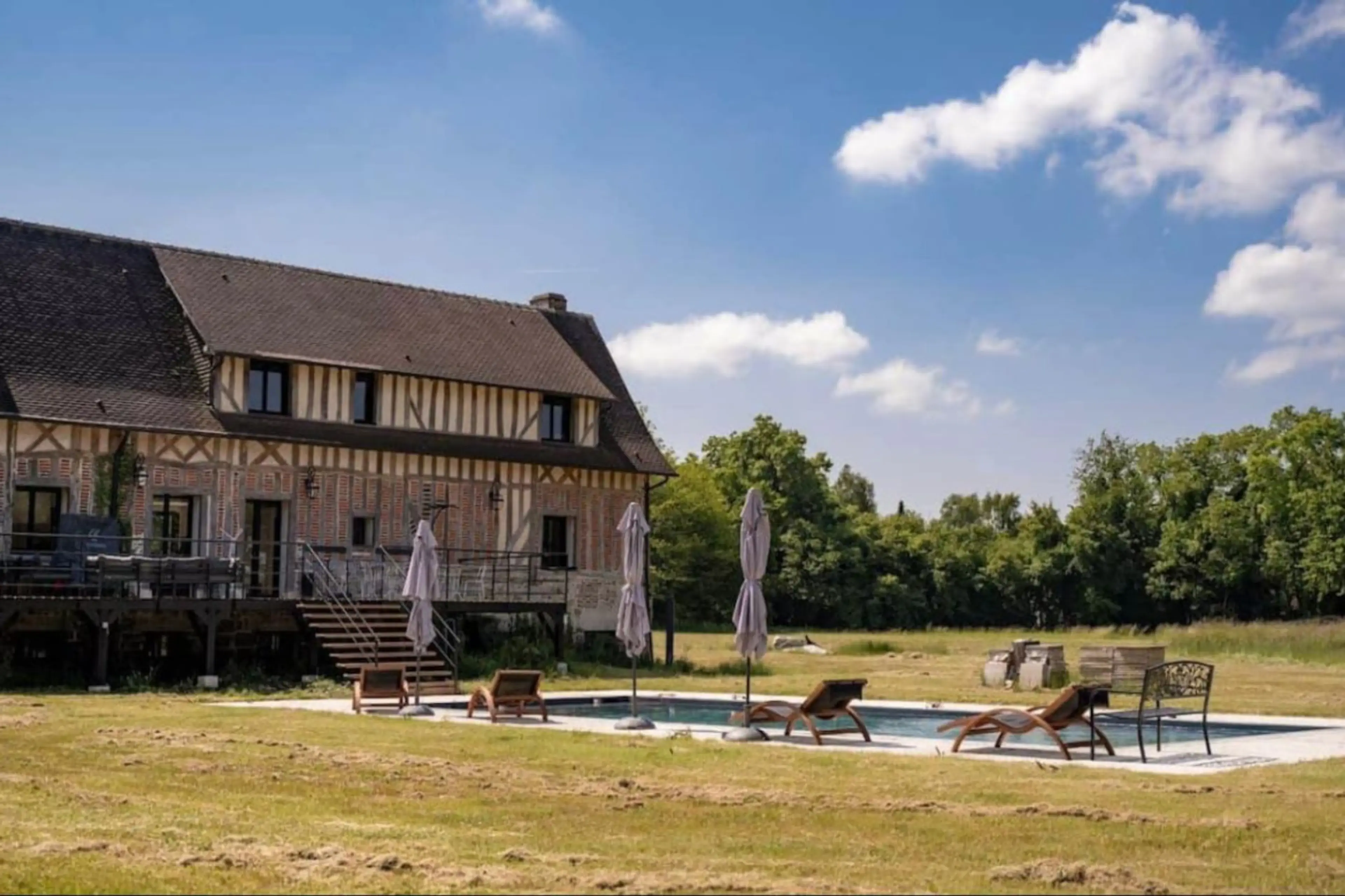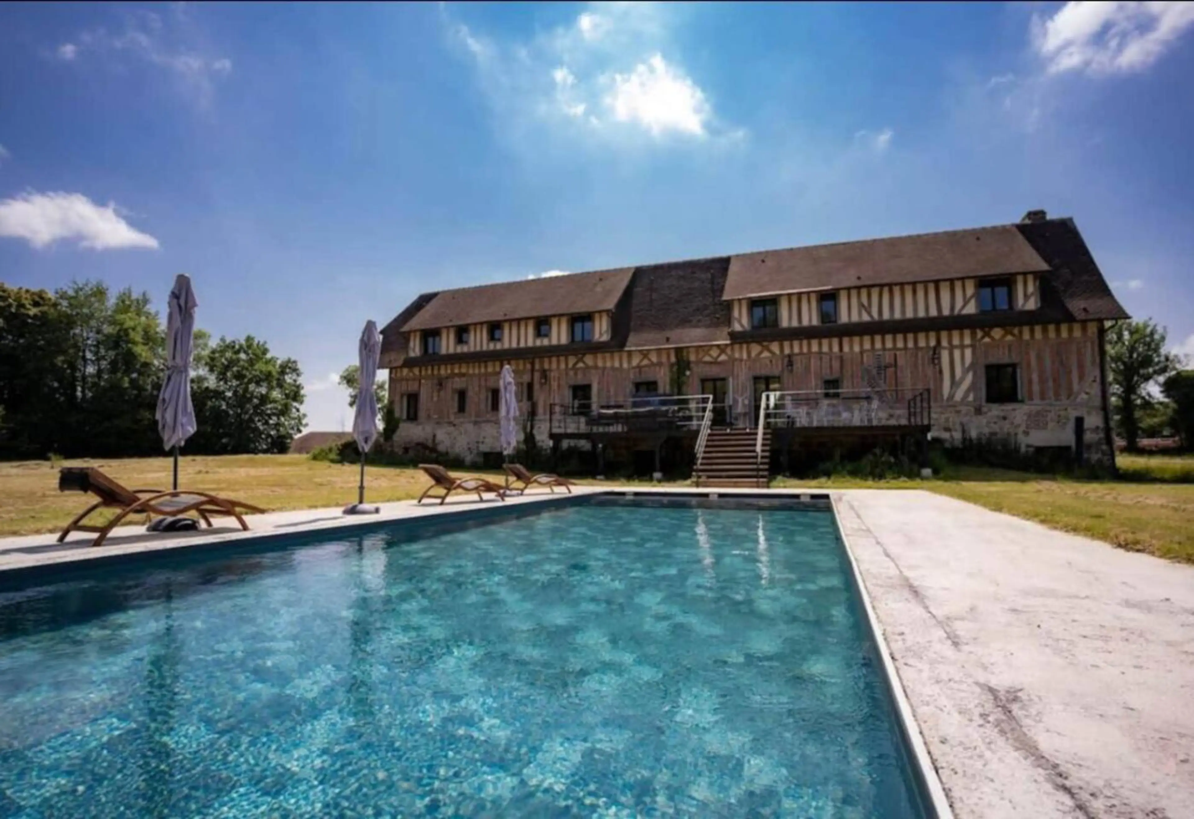 Cette charmante maison est situé dans la ville de Boulleville au cœur d’un charmant village normand. Entièrement équipé pour 12 personnes Cuisine entièrement équipée 6 Salles de bain 6 Chambres TV Wi-Fi Grand jardin Piscine ouverte Sauna Hammam Salle de sport Salle de Jeu - La maison est vaste et...