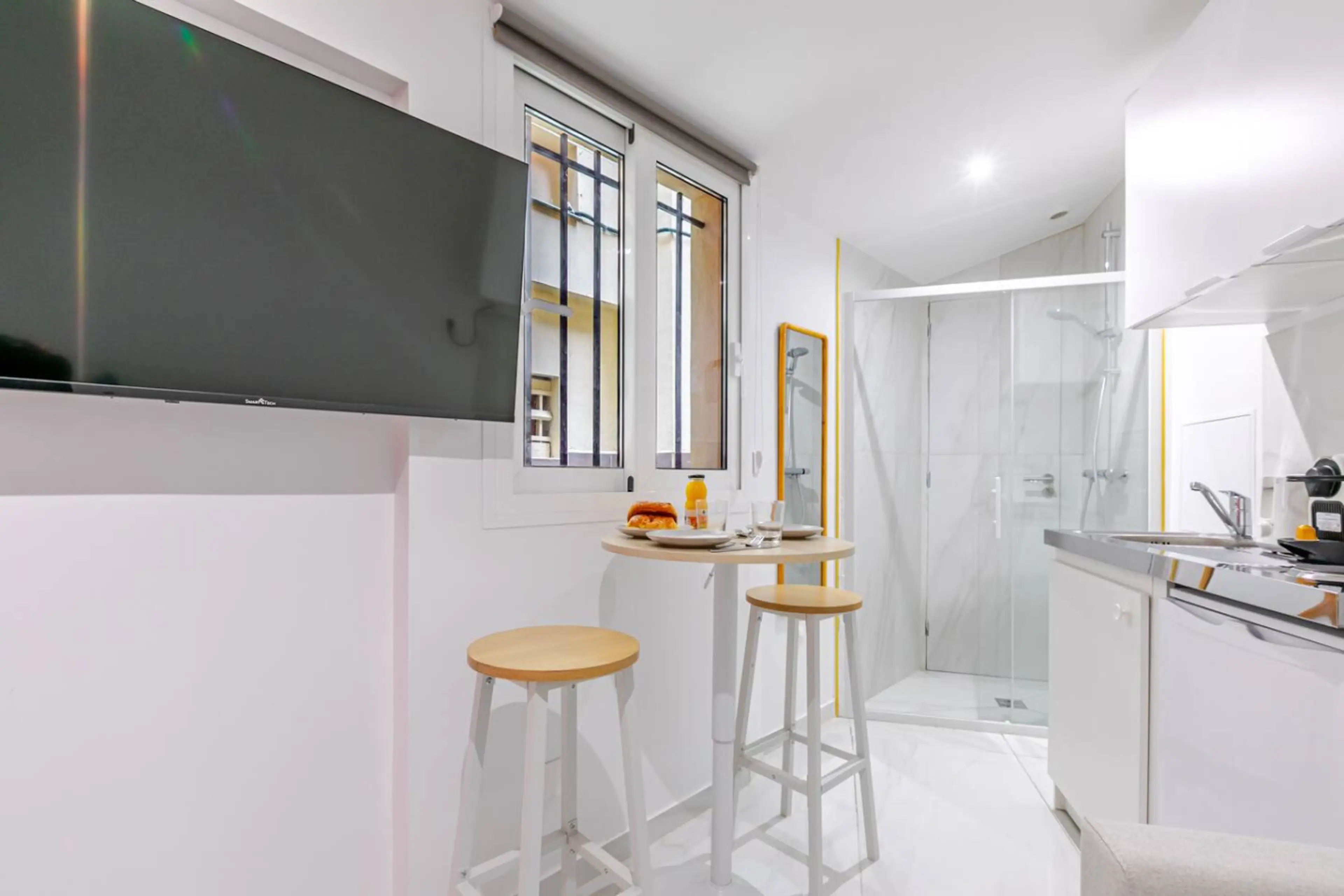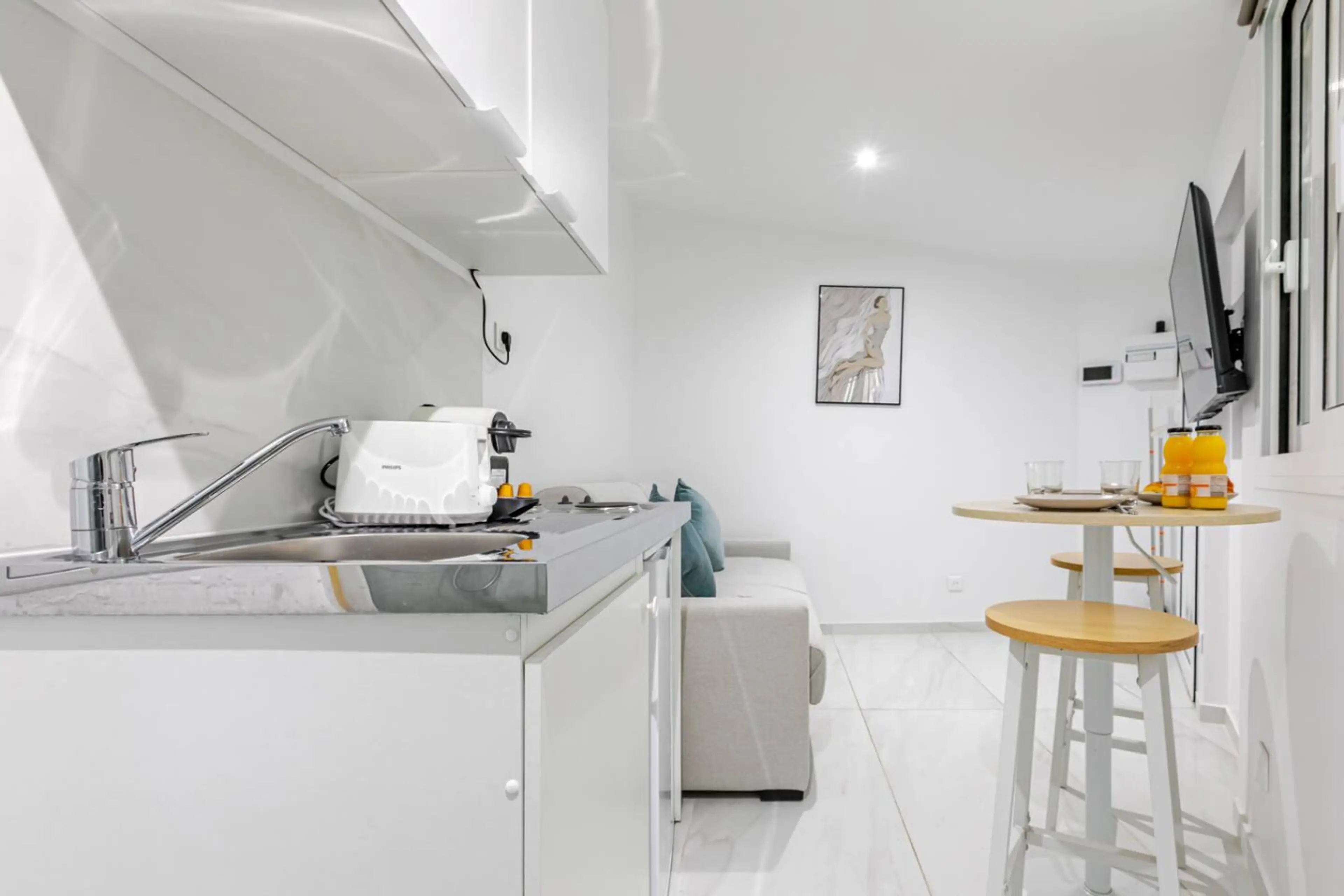 Ce tout petit et charmant studio est situé au cœur de Paris dans le 18ème arrondissement offrant un pied-à-terre confortable et pratique pour votre séjour dans la capitale. Equipé pour maximum 2 personnes 1 Canapé lit double 1 Douche Espace repas TV Wi-fi - La kitchenette est équipée avec tous les...