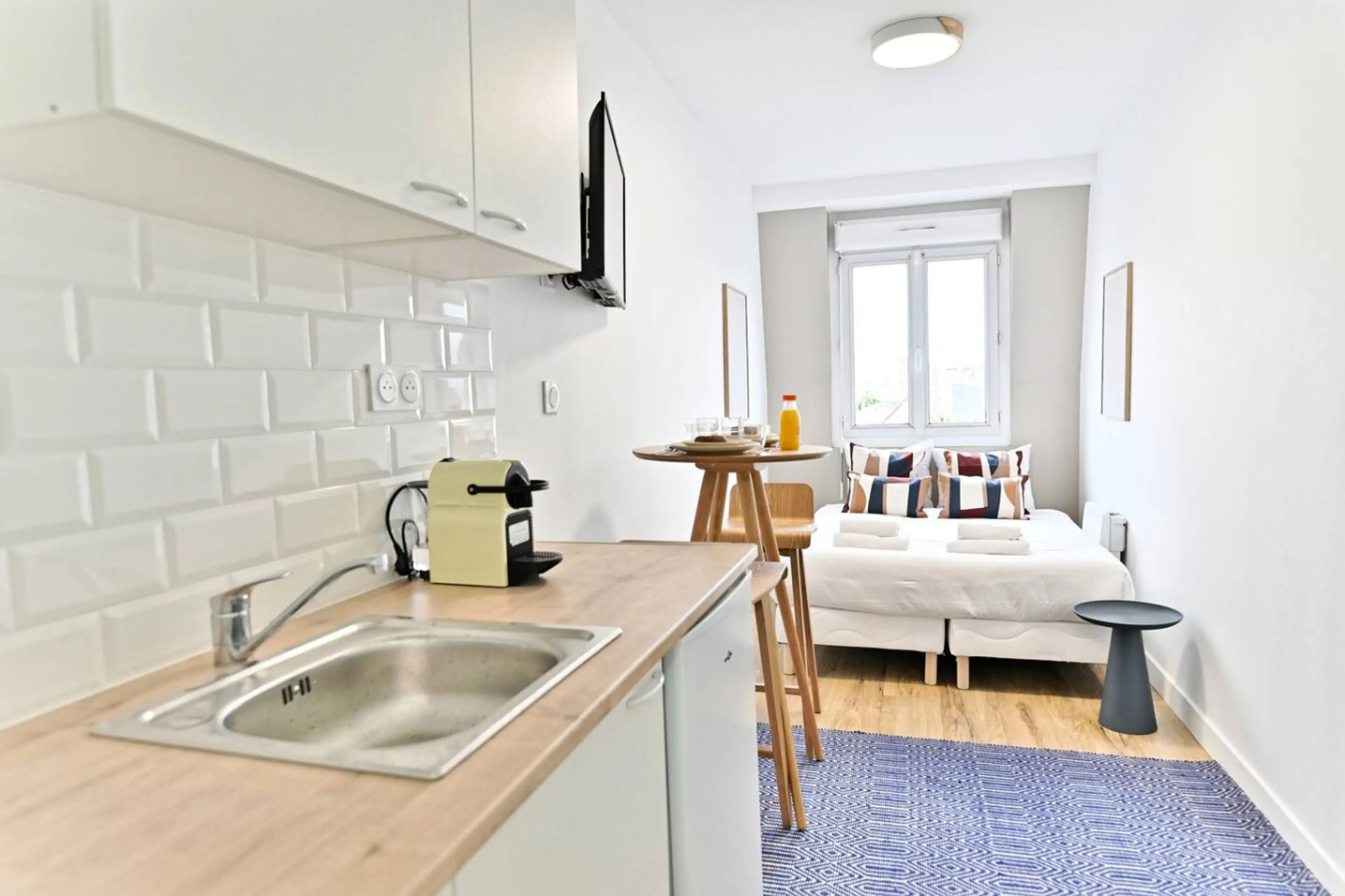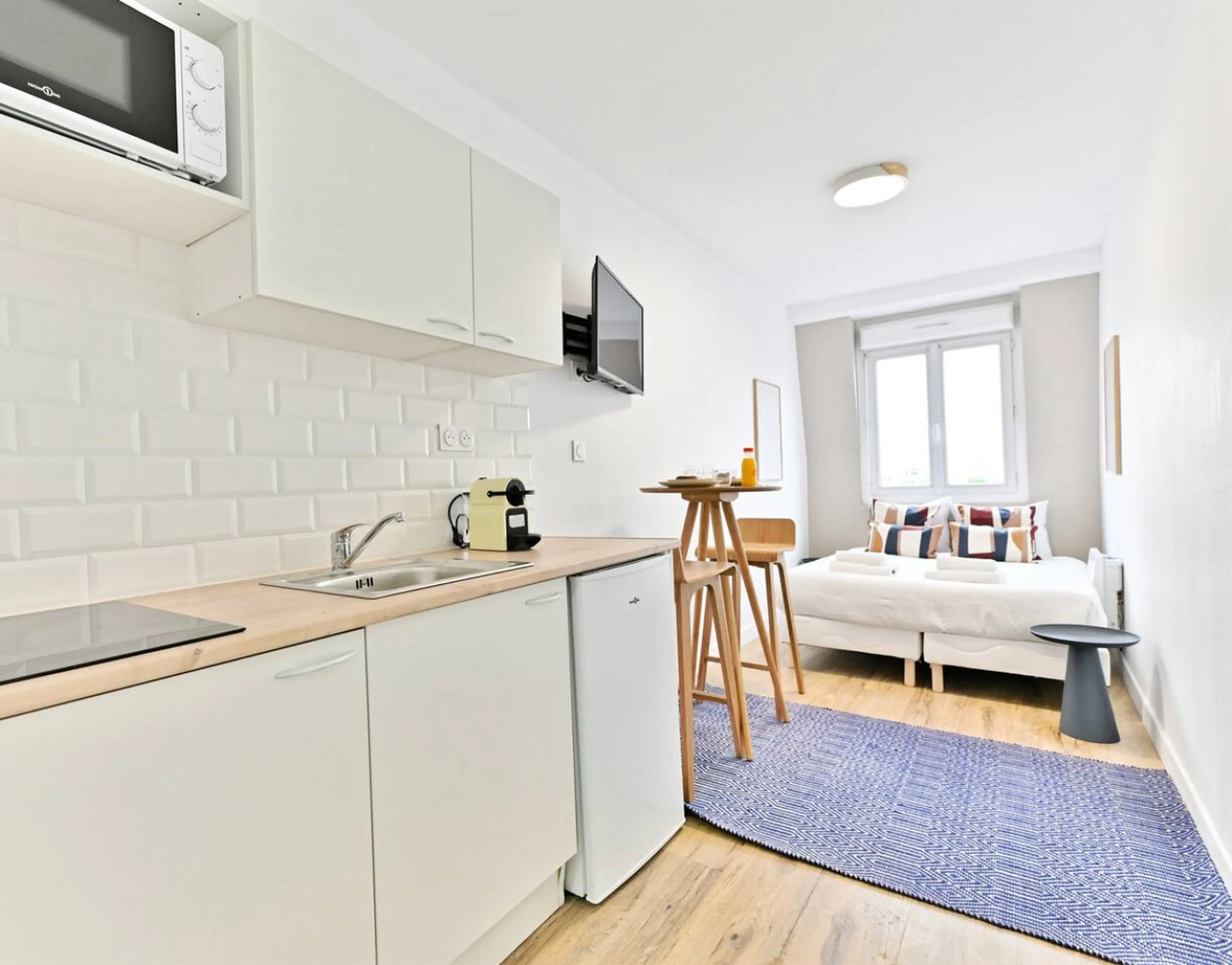 Ce petit studio se trouve dans la paisible ville de Asnières-sur-Seine en Île-de-France, offrant un pied-à-terre confortable et pratique pour votre séjour dans la capitale. Équipé pour 2 personnes 1 Salle de bain 1 Lit Queen Size Smart TV Wi-Fi - La cuisine est équipée de tout ce dont vous avez b...