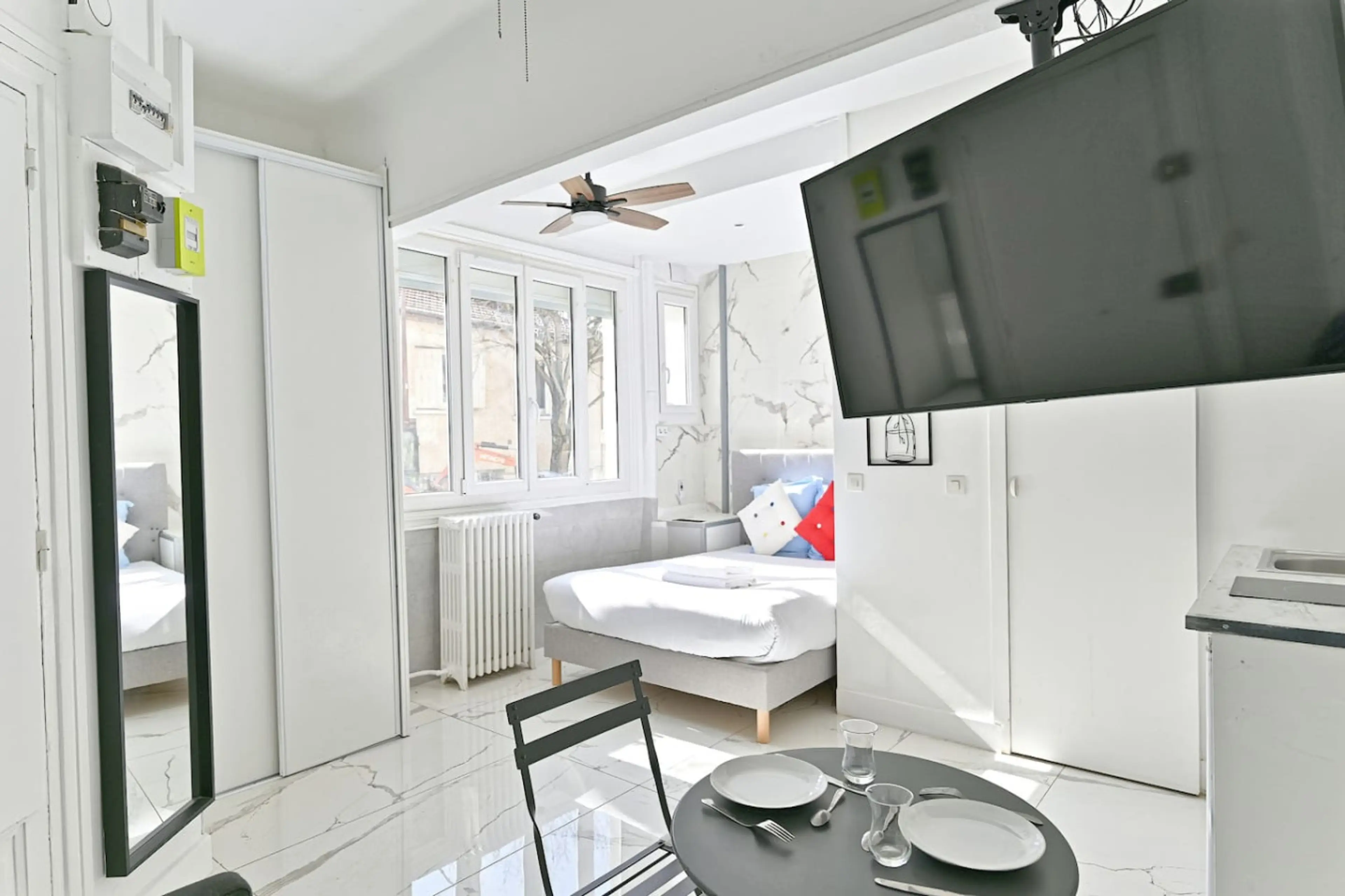 Passez un agréable séjour dans un charmant studio situé dans la ville des Lilas en ile-de-France offrant un pied-à-terre confortable et pratique pour votre séjour dans la capitale. Le studio est à 5 minutes de Paris. Equipé pour 3 personnes 1 Salle de bain 1 lit double 1 canapé lit Smart TV Wi-Fi ...