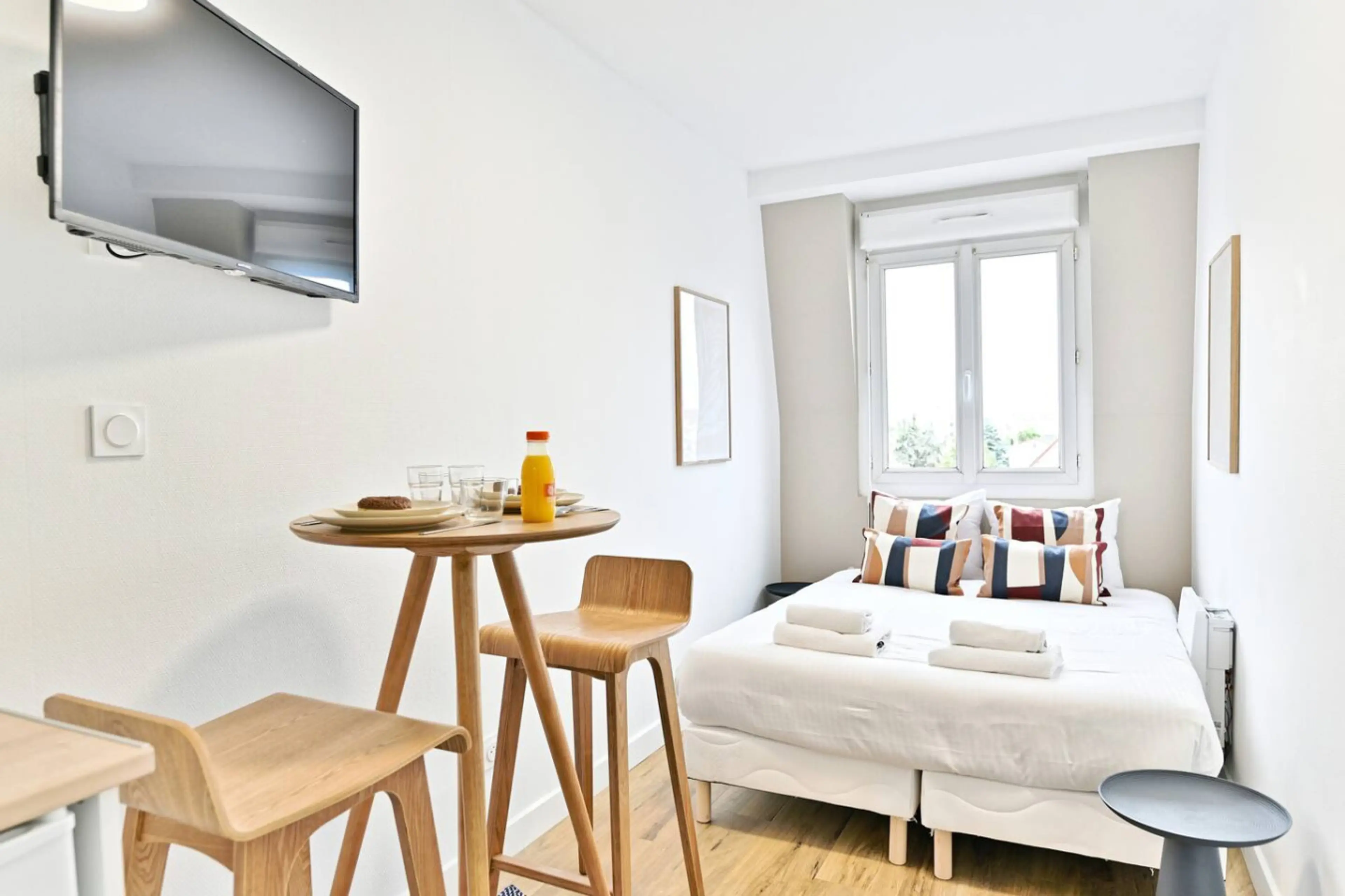 Ce petit studio se trouve dans la paisible ville de Asnières-sur-Seine en Île-de-France, offrant un pied-à-terre confortable et pratique pour votre séjour dans la capitale. Équipé pour 2 personnes 1 Salle de bain 1 Lit Queen Size Smart TV Wi-Fi - La cuisine est équipée de tout ce dont vous avez b...
