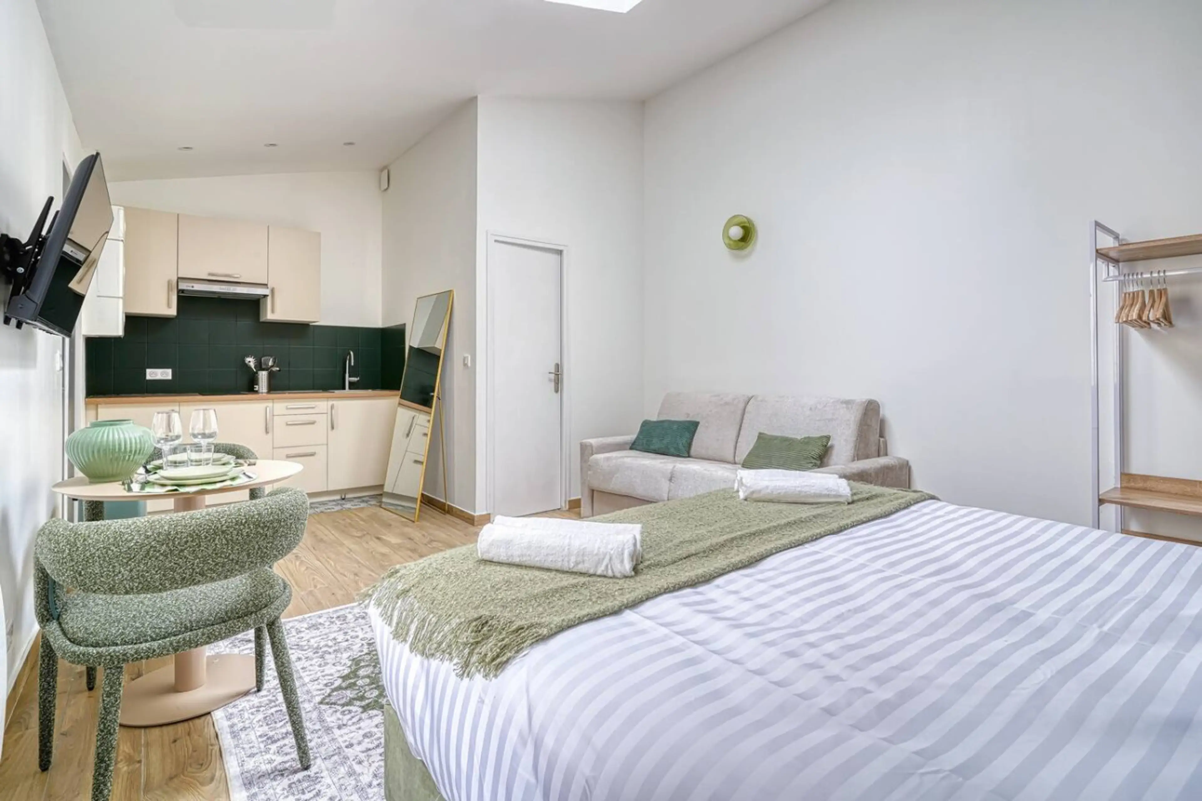 Ce studio vous offrent tout le confort nécessaire pour un séjour agréable. Votre cocon chaleureux aux portes de Paris Situés à Saint-Denis, aux portes de la capitale, nos appartements ont été pensés pour offrir une expérience confortable et moderne, idéale aussi bien pour un déplacement profession...